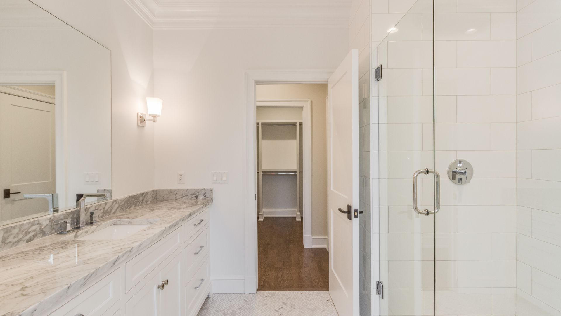 Every inch of the Chesterfield residence reflects thoughtful design—from the built-in office cabinetry to the tailored mudroom and expansive primary closet. Each selection, from hardware to lighting, was chosen in collaboration with the clients, ensuring the home reflects their lifestyle and taste.